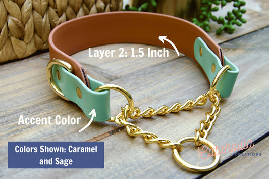 Two Color 1.5 INCH Tapered Martingale Biothane Dog Collar