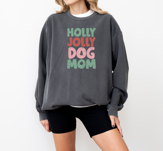 Holly Jolly Dog Mom Christmas Crewneck Sweatshirt