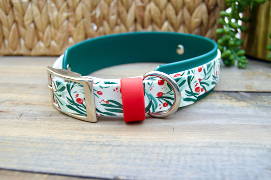 Winter Holly: Printed Double Layer Biothane Dog Collar