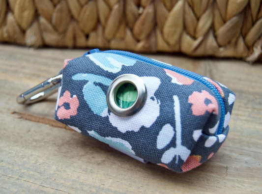 WILLOW: Navy and Orange Floral Dog Poop Bag Holder