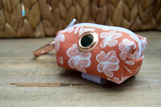 BLOSSOM: Coral Cherry Blossom Floral Dog Poop Bag Holder