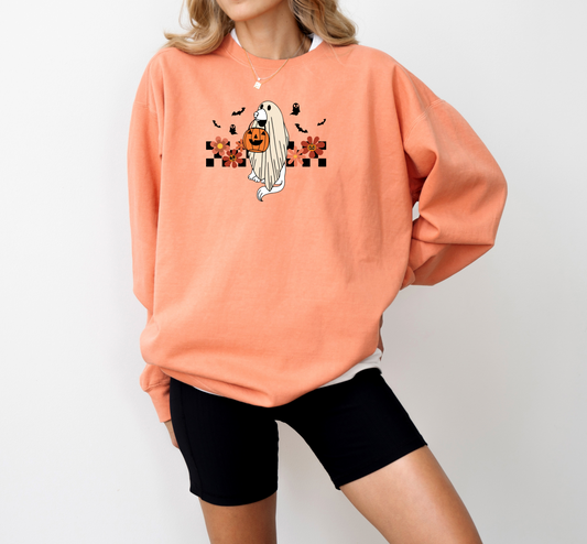 Checkered Ghost Dog Halloween Crewneck Sweatshirt
