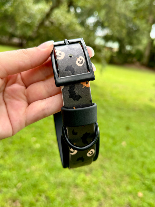 Black and White Ghosts: Halloween Printed Double Layer Biothane Dog Collar