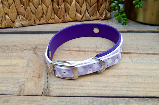Lilac Ghosts: Halloween Printed Double Layer Biothane Dog Collar