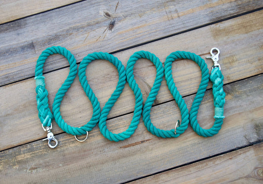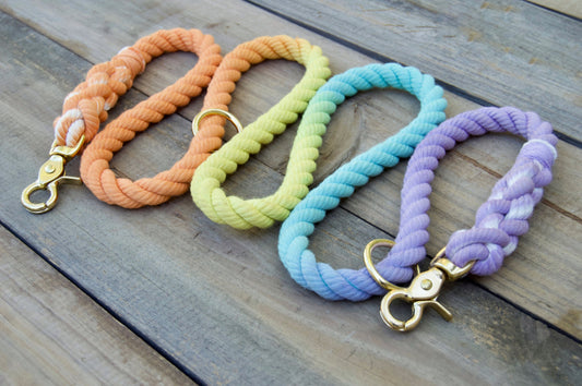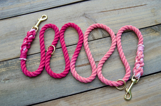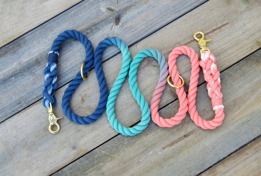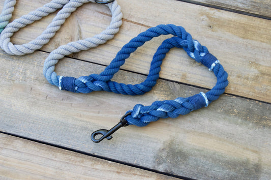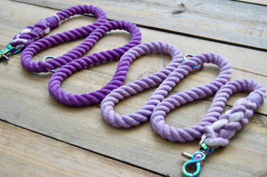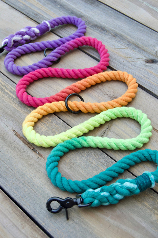 Handsfree rope leashes have many uses! Use over the shoulder, as a standard leash, around the waist, or as a tie-out at dog friendly cafes!
