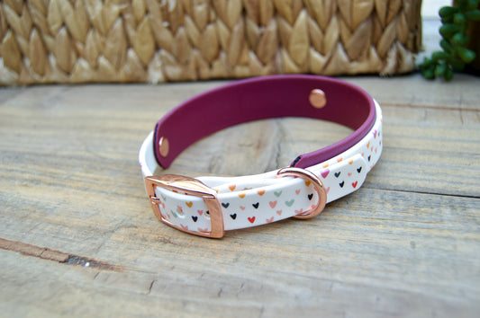 Colorful Hearts: Printed Double Layer Biothane Dog Collar