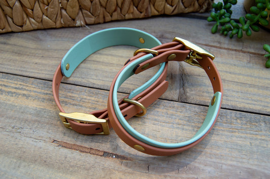 RTS: Caramel and Sage Mini Double Layer Biothane Dog Collar