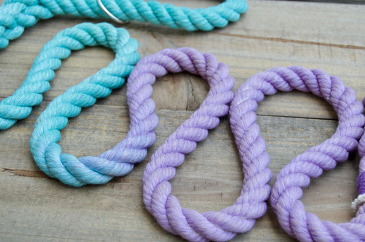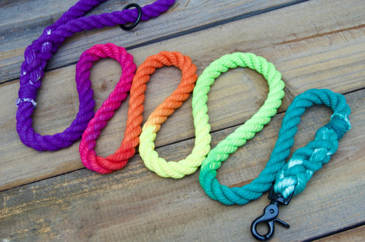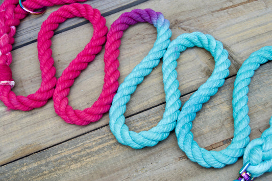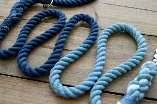Hand dyed cotton rope dog leashes. Create a custom leash for your pup!
