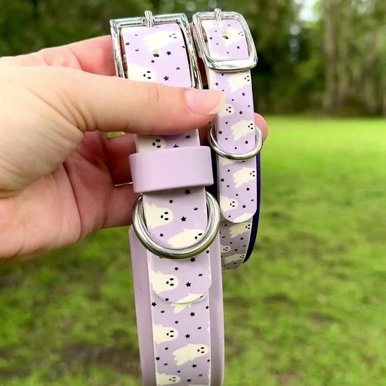 Lilac Ghosts: Halloween Mini Printed Double Layer Biothane Dog Collar