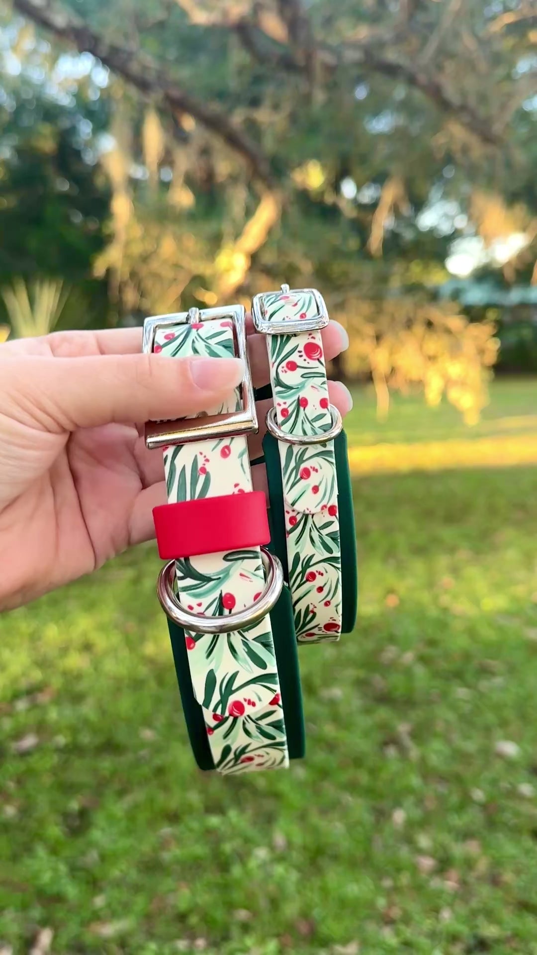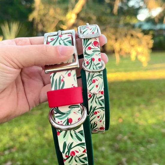 Winter Holly: Mini Printed Double Layer Biothane Dog Collar